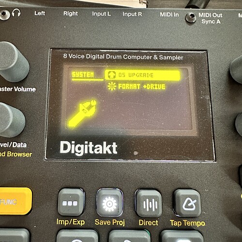 Having a rather challenging morning. I’ve got an older Digitakt in the studio and an updated one. I decided to upgrade the firmware on this older machine which is currently running OS 1.01.